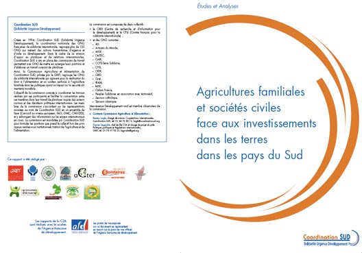 Mise en page de Agricultures familiales et sociétés civiles face aux investissements dans les terres dans les pays du Sud, fourniture des fichiers prépresse. 140 pages.